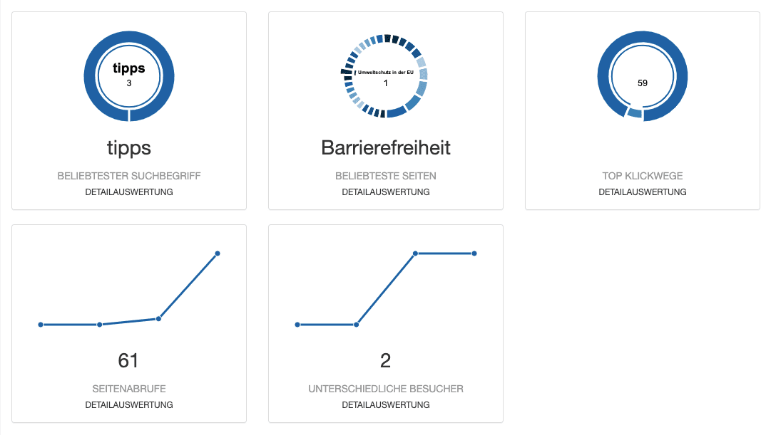 SON stellt standardmäßig verschiedene Reporting-Funktionalitäten zur gezielten Auswertung des Verhaltens der Portal-Nutzer*innen bereit